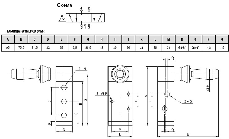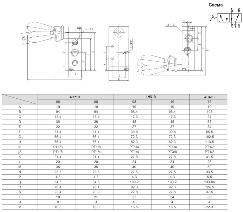 Функции переключения: Линейка пневмораспределителей с ручным управлением включает в себя все самые распространенные функции переключения для 5-ти линейных распределителей.