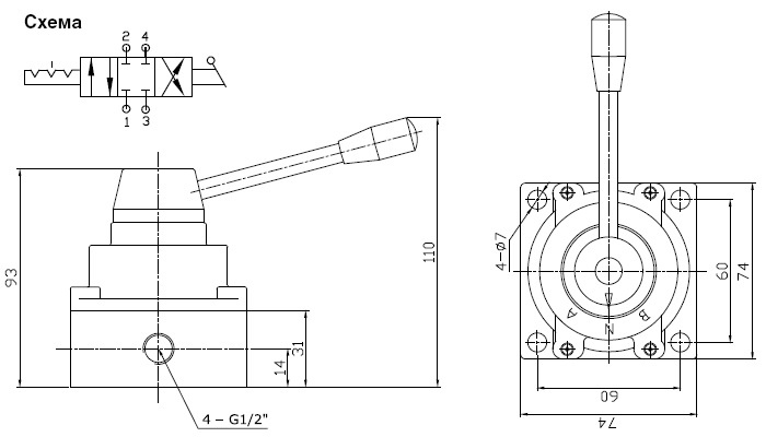 Пневмораспределители трехпозиционные четырехлинейные с управлением кранового типа с условным проходом 10 и 16 мм предназначены для открытия, закрытия и переключения линий подачи воздуха.