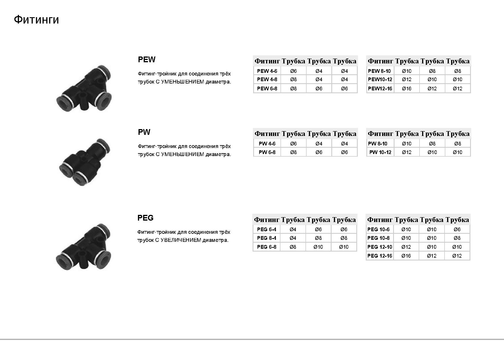 Внешний диаметр присоединяемой трубки: 4, 6, 8, 10, 12, 14, 16 мм