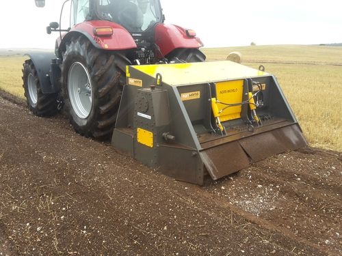 Почвенная фреза – дробилка камней Agri-World серия FPRD с молотками из карбидо- вольфрама , создана для работы в верхнем слое земли, где встречаются камни, и превалирует древесно-кустарниковые остатки (корни и пни), без предварительной подготовки почвы. Рабочая глубина составляет до 300 мм, рабочая ширина по желанию заказчика может быть от 1400 мм до 2400 мм. Трактор под ротоватор должен быть оснащен гидроходоуменьшителем , максимальная скорость работы до 300 м/час.