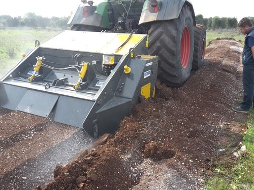 Почвенная фреза – измельчитель пней и корней Agri-World серия FTCD, создана для работы в верхнем слое земли, где встречаются камни, и превалирует древесно-кустарниковые остатки (корни и пни), без предварительной подготовки почвы. Рабочая глубина составляет до 150 мм, рабочая ширина по желанию заказчика может быть от 900 мм до 2500 мм. Трактор под ротоватор должен быть оснащен гидроходоуменьшителем , максимальная скорость работы до 300 м/час
