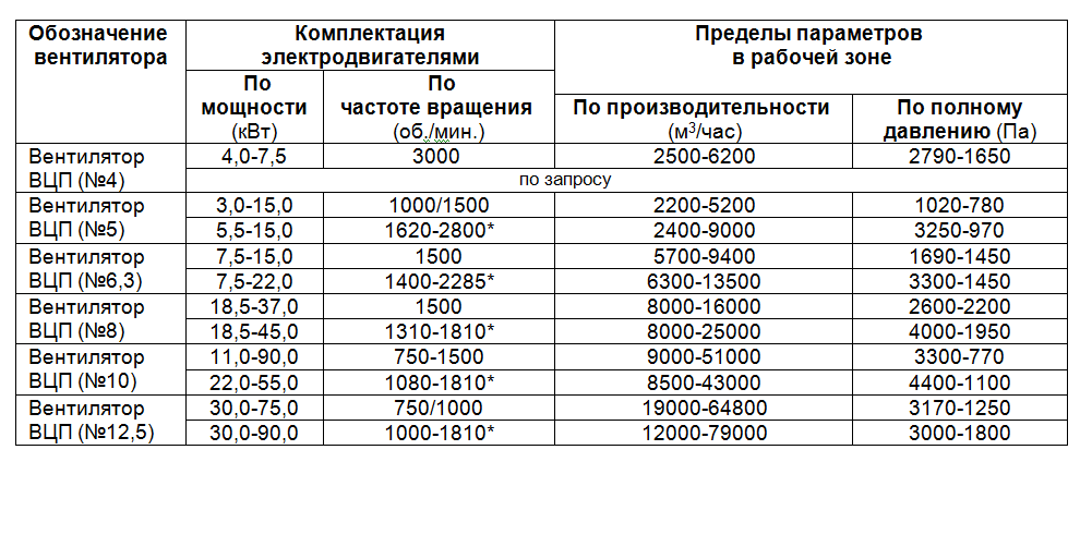 Вентилятор ВЦП (№4) 4, 0-7, 5 3000 2500-6200 2790-1650
