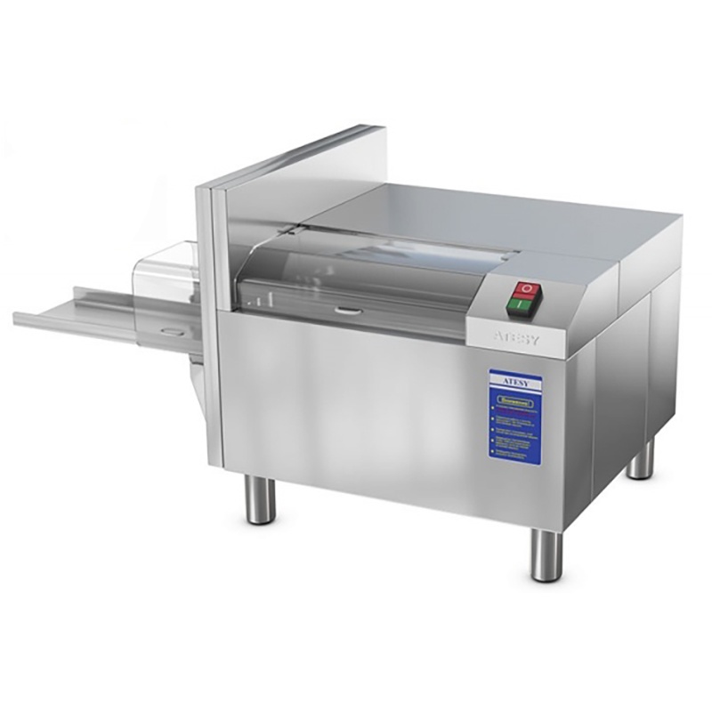 Хлеборезка Ахм-300А (так же носит название «Янычар») необходима на предприятиях общественного питания, а также на предприятиях по производству хлеба и хлебобулочных изделий. С ее помощью можно автоматизировать нарезку хлеба в больших количествах. Куски нарезанного хлеба получаются идеально ровными. Благодаря специально форме ножа при высокой производительности хлеборезка не ломает и не крошит хлеб. Регулятор позволяет выбрать необходимую толщину ломтика.