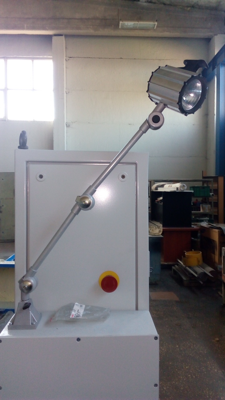 Светильник сделан из нержавеющей стали, 50W 24V. Состоит из 2 колен(длинна колена 280см). В комплект входит галогенная лампа
