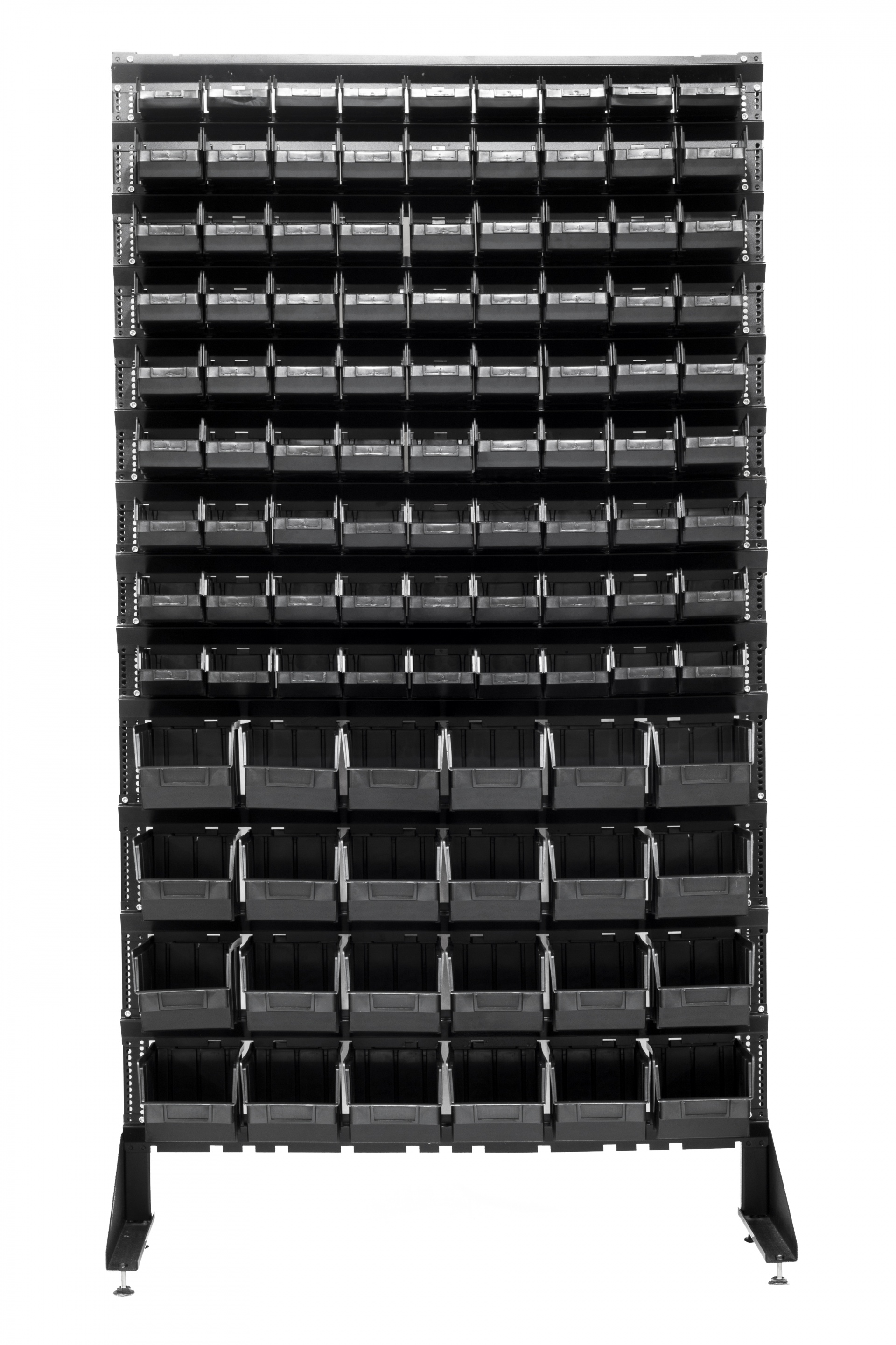 Наши стенды прекрасно решили проблемы с беспорядком в крепежных магазинах, на каждом ящике имеется место для бирки, а благодаря ребрам жесткости контейнеры прекрасно выдерживают большой вес продукции.