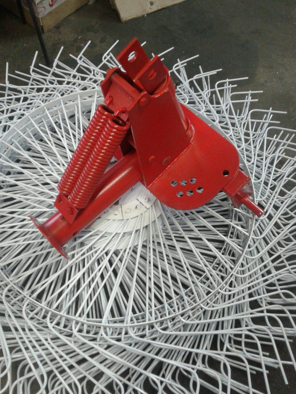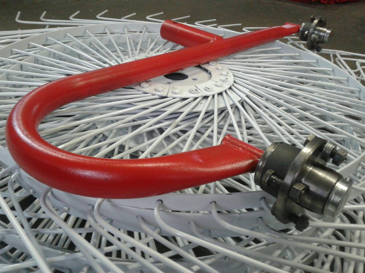 Крепление рабочего колеса граблей к раме осуществляется автомобильной колесной ступицей с коническим подшипником. Данный узел практически не подвержен поломкам.