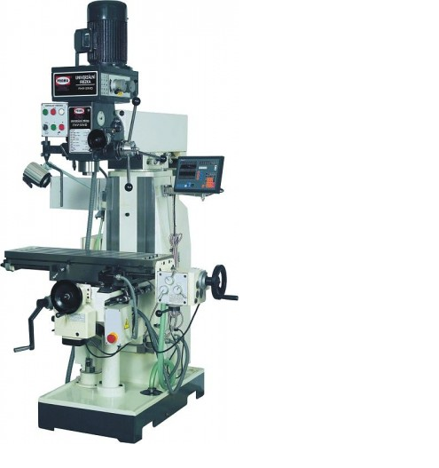 Базой станка является станина, жестко закрепленная к основанию. По вертикальным направляющим станины движется консоль (ось Z). По горизонтальным направляющим консоли перемещается в поперечном направлении механизм стол-салазки (подача по оси Y), а по направляющим салазок в продольном направлении – стол (подача по оси X). Спереди консоли смонтирован частотный преобразователь поперечной подачи стола (имеется только на станке FHV-50PD и FHV-50VD). На правом торце стола смонтирована коробка продольной подачи стола. На станине установлен хобот, который вращается на 3600 вокруг своей оси по горизонтали и перемещается вперед-назад. Фрезерная головка состоящая из шпиндельной головки вертикального шпинделя, коробки скоростей и электродвигателя закреплена на переднем торце хобота. Фрезерная головка наклоняется вправо- влево ±60º. В шпиндельной головке смонтирован шпиндельный узел, а шпиндель в пиноле на шарикоподшипниках. Ручная подача шпинделя осуществляется вращением вала-шестерни и перемещением пиноли. Шпиндель оснащён конусом МкIV, в который можно вставить сверлильный патрон на оправке или инструмент с конусом МкIV. Главное движение шпиндель получает от электродвигателя через коробку скоростей.