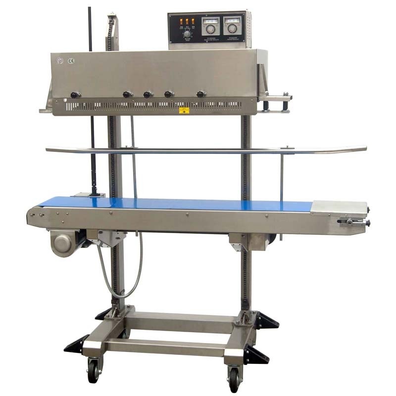 Конвейерные запайщики пакетов серии FRM-1120 широко используются для запайки горловины более тяжелых и габаритных пакетов. Направление движения пакета — справа налево <-<-<