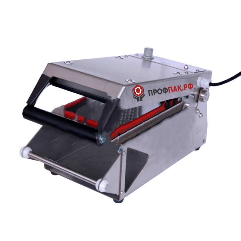 Ручной запайщик лотков (трейсилер) предназначен для небольших производств, супермаркетов, столовых и т. д. Оператор помещает лоток в матрицу, протягивает пленку, и закрывает крышку, которая запаивает лоток и обрезает пленку по длине. Корпус запайщика выполнен из нержавеющей стали. Встроенный терморегулятор и реле времени для визуального контроля, позволяет выбрать нужный режим работы нагревателя, что позволяет добиться наилучшего качества запаечного шва. В запайщике предусмотрен держатель пленки. Матрица может меняться.