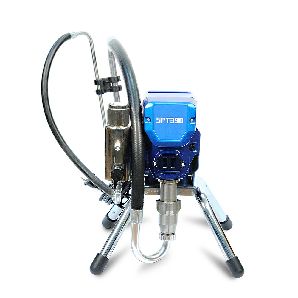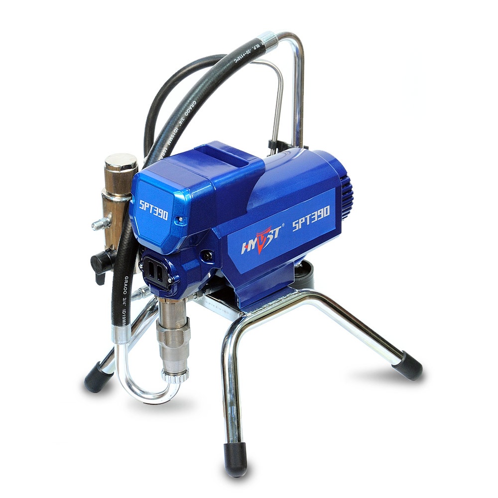 HYVST SPT 390 – оборудование для проведения покрасочных работ безвоздушным способом. Окрасочный аппарат собран по образу и дизайну американского окрасочного агрегата Graco 390 KA. Весь принцип работы данного аппарата и все особенности распыления краски с помощью него полностью аналогичны аппарату фирмы Грако. Окрасочный аппарат применяют для небольших объемов покрасочных работ на строительных площадках, при покраске стен,потолков, фасадов, грунтования и покраска металла. Окраска от окрасочного агрегата ведется через специальный краскопульт для безвоздушного распыления краски под высоким давлением.