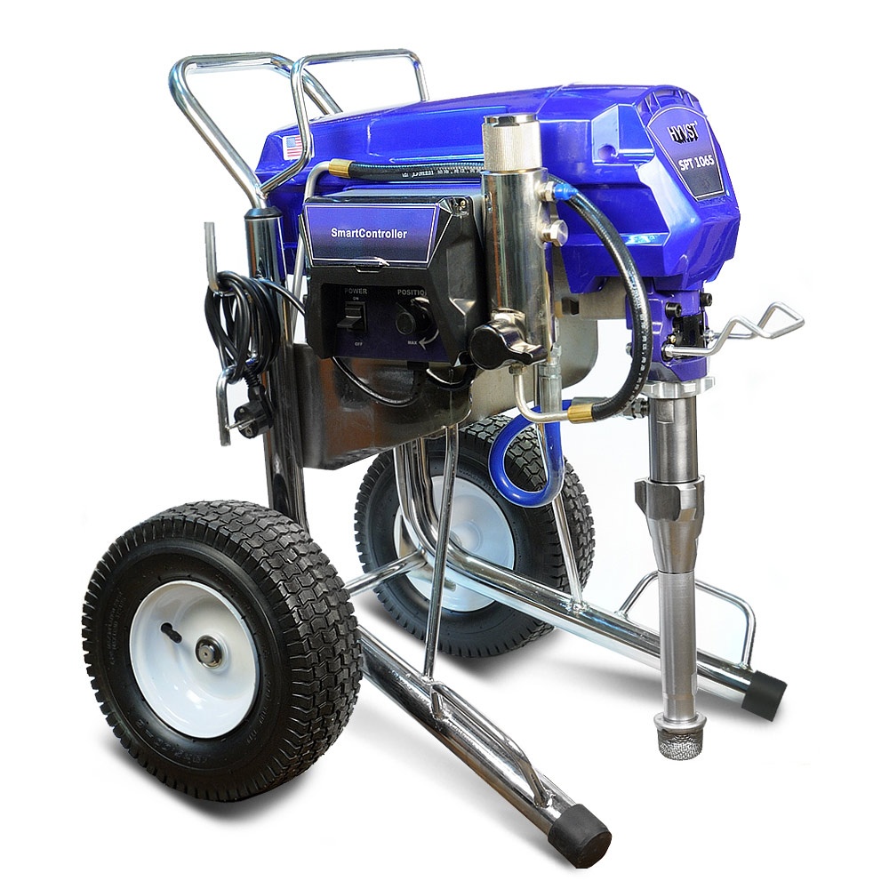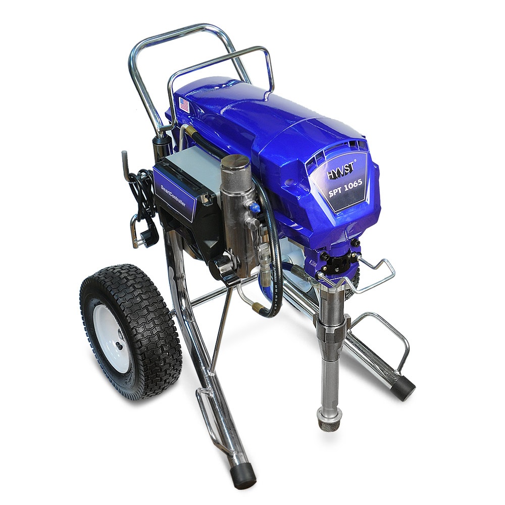 HYVST SPT 1065 - современный безвоздушный окрасочный агрегат безвоздушного распыления на базе поршневого электрического насоса для краски, установленного на колесную тележку. Окрасочный аппарат рекомендуется для применения на строительной площадке при покраске стен, потолков, фасадов здания и металлических конструкций. Благодаря прямой системе всасывания окрасочный аппарат HYVST можно применять с красками и грунтами достаточно большой вязкости. Аппарат может распылять водоэмульсионные краски, латексные, акриловые, масляные и эпоксидные краски, цинконаполненные краски при условии их периодического перемешивания.