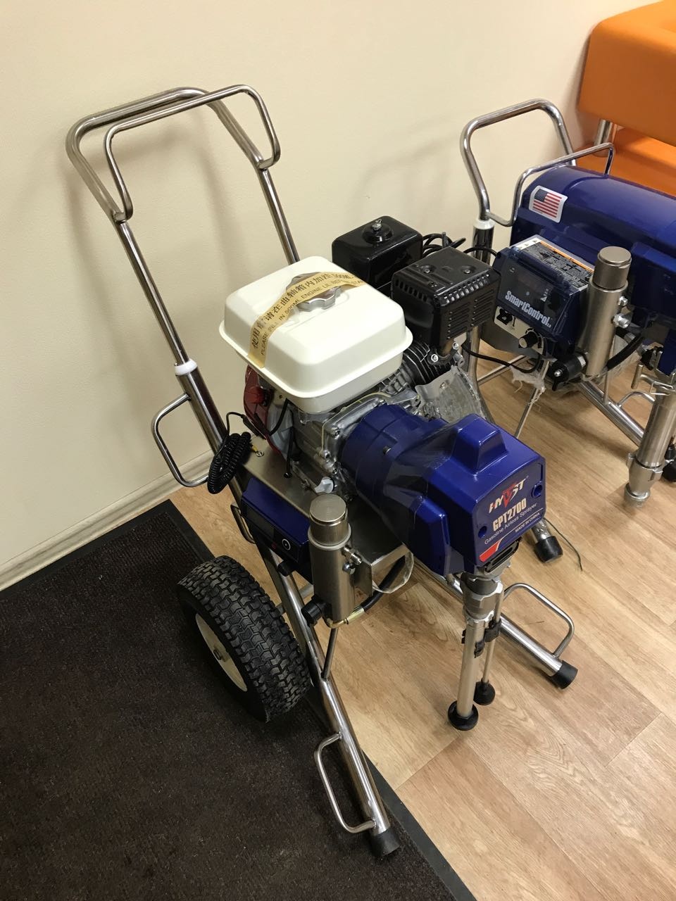 Поршневой окрасочный аппарат безвоздушного распыления с бензиновым двигателем. Данное оборудование оснащено бензиновым двигателем Honda, мощностью 6 hp 4500 Вт, а поршневой насос позволит Вам распылять краски высокой вязкости. Этот окрасочный аппарат с бензиновым двигателем позволит Вам работать там, где невозможно использовать электричество, а удобная тележка позволит Вам без затруднений перемещать аппарат на большие расстояния.