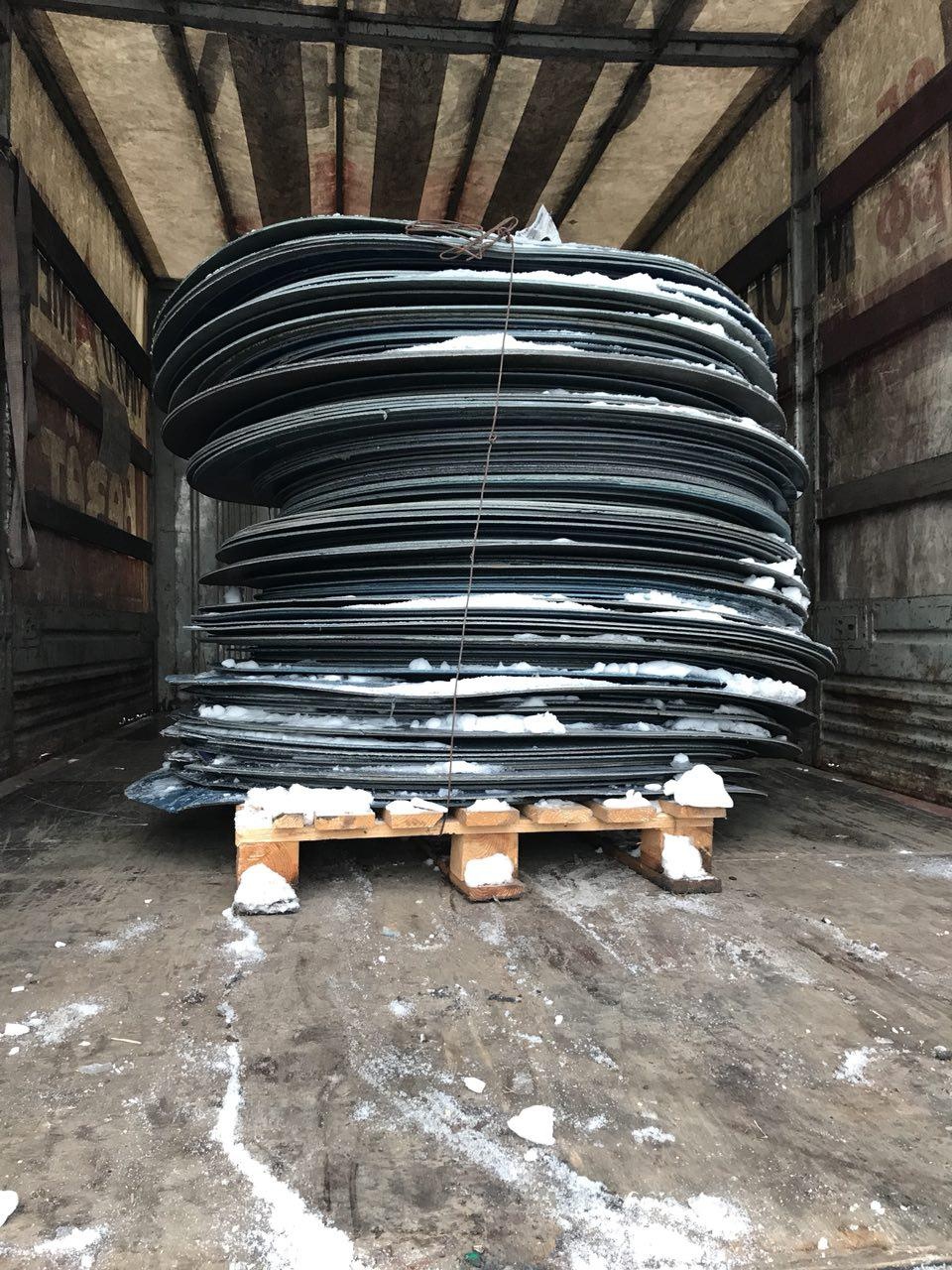 Листы в форме окружности дя переработки литьевым методом. Сложеные на поддонах и в кипованом виде