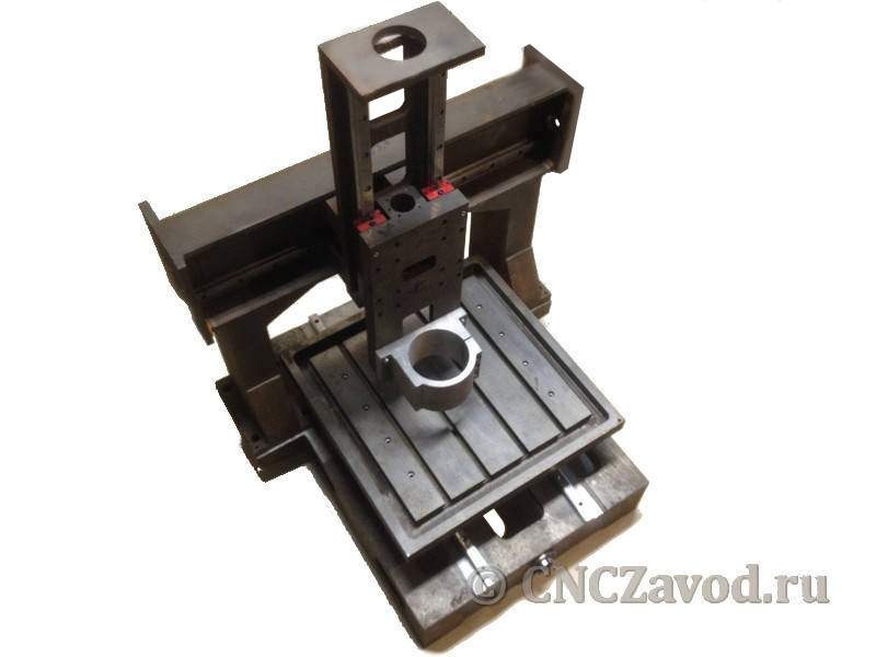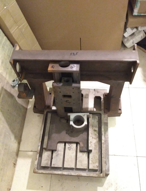 Комплект литых, чугунных деталей для самостоятельной сборки фрезерного станка портального типа с рабочим полем 600х600мм, для обработки заготовок из стали, металлов, чугуна. Получены методом чугунного литья, прошли термообработку, а все крепежные и базовые плоскости фрезерованы.