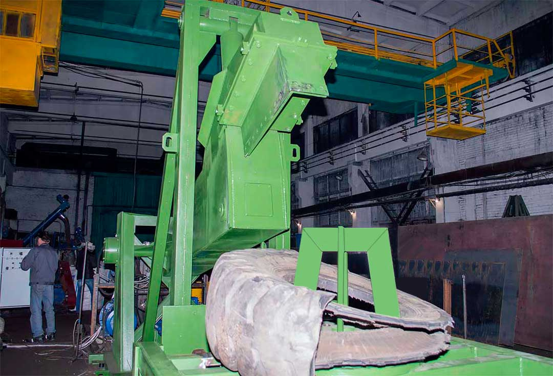 Гидравлические ножницы для резки шин необходимы для переработки и утилизации старых изношенных автопокрышек. Шины без бортовых колец с помощью гидроножниц разрезают на резиновые чипсы, которые в дальнейшем можно продать, как вторсырье для РТИ или переработать в крошку. Оборудование может использоваться самостоятельно или в составе технологической линии для переработки шин ЛПШ. Резиновые чипсы в дальнейшем можно рубить на шредере РРМ в крошку, истирать в вальцах, либо использовать роторную дробилку.