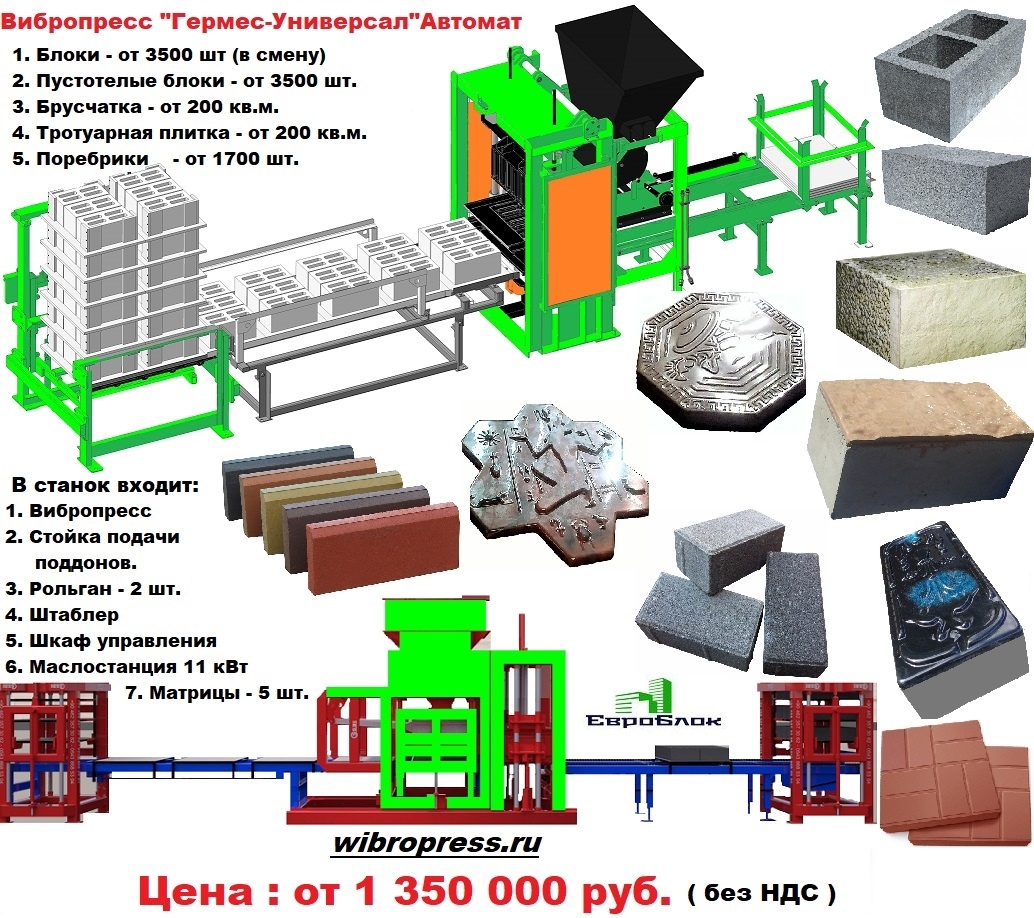 Марка прочности Евроблоков соответствует от М75 до М110, марка бетона от М300 до М450, морозостойкость до 150 циклов. При пр-ве Евроблоков применяются стандартные сыпучие материалы для бетонов с добавлением цемента, а облицовка блока имеет вид мрамора. Дома из теплоэффетивных Евроблоков имеют свойства термоса. Зимой тепло не выпускает с дома, а летом в жару в доме прохладно. затраты на отопление в 3-3.5 раза меньше, чем в кирпичных домах, например, для отопления дома общей площадью 200 кв. м требуется котел мощностью всего 24 кВт. Вы экономите на утепление и фасаде дома. Строительство домов из теплоэффективных Евроблоков занимает от 30-40 дней. Экономичность готовых блоков, и высокая скорость возведения зданий. Производства оборудования в Нижнем Новгороде. Более подробно Вы можете узнать, позвонив нам по телефону или написать по эл. почте. С каждым годом спрос на Евроблоки повышается! Есть и другие станки по производству Евроблоков, других блоков и стройматериалов цена станка от 90.000 руб. Пишите и по цене мы договоримся. ( wibropres точка ру )