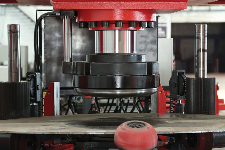 Состоит гидравлический пресс из манипулятора (опция) и высоко тоннажной гидравлической установки. Диапазон мощностей BMB-P от 150 до 1600 тонн. Диапазон диаметров от 500 до 10.000 мм