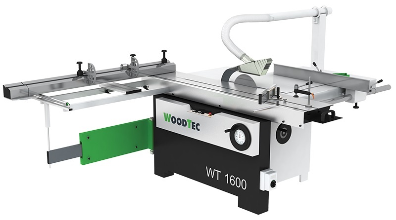 Форматно-раскроечный станок WoodTec 1600|Длина каретки: 1600 мм, Мощность двигателей: 5,5 + 0,75 кВт, Вес: 480 кг, наклон пильного узла до 45° в вертикальной плоскости.