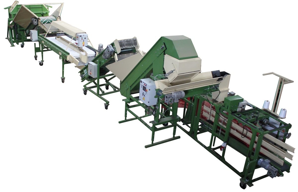 Линия (оборудование) для приёмки, сортировки, переборки, автоматической фасовки упаковки овощей, картофеля, лука, моркови, корнеплодов.