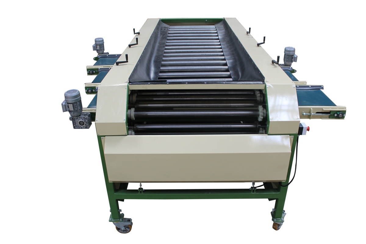 Во время движения роликов расстояние между калибровочными валами увеличивается, овощи проваливаются на ленточные отводящие транспортеры.