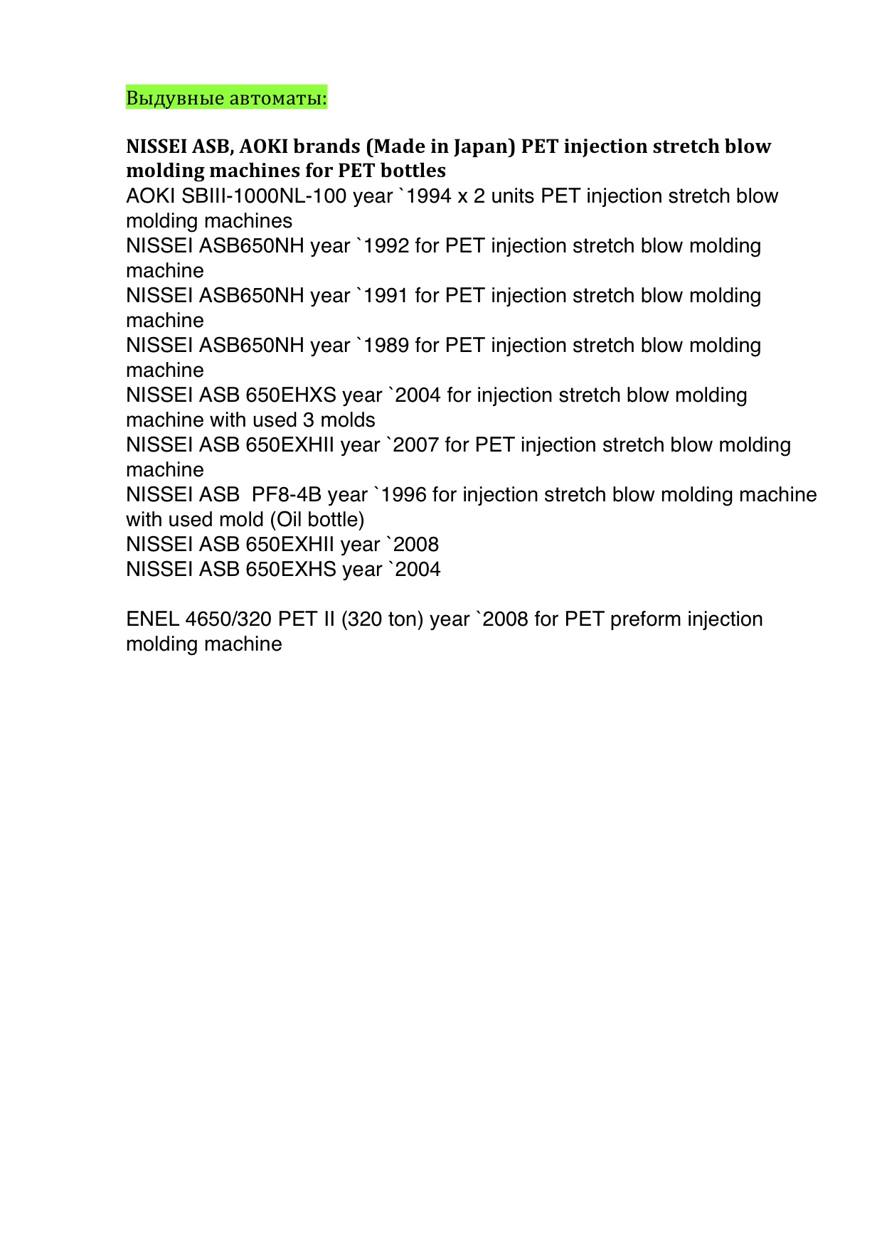Выдувные автоматы ПЭТ Б/У - Продам в Москве
