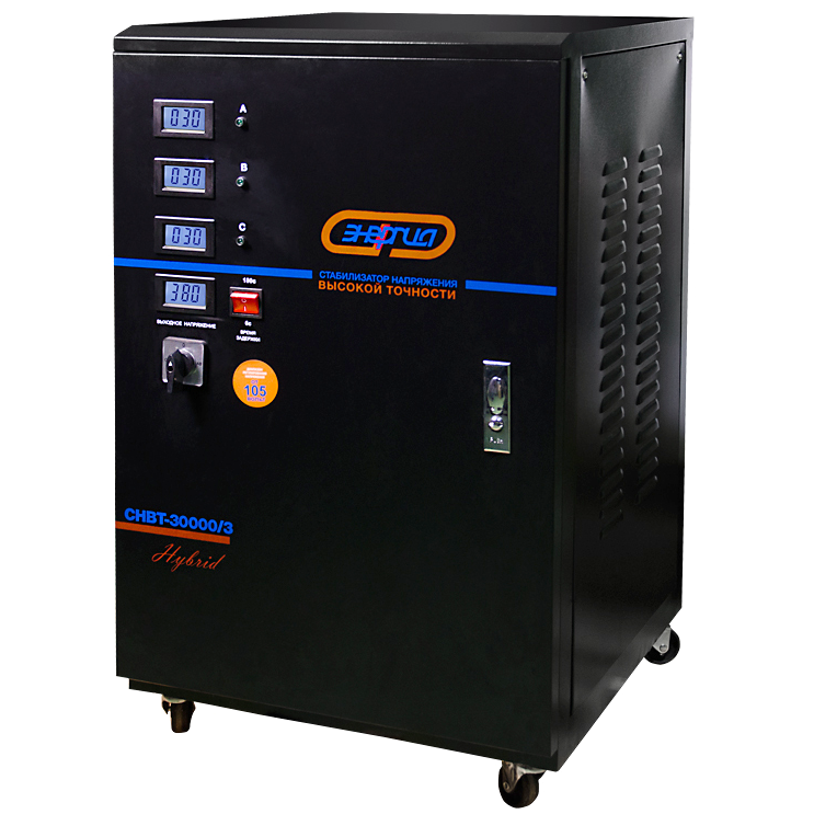 Купить стабилизатор напряжения Энергия СНВТ-30000/3 Hybrid Вы можете в нашем интернет магазине Stabili.ru. Стабилизаторы данного типа предназначенны для выравнивания напряжения.