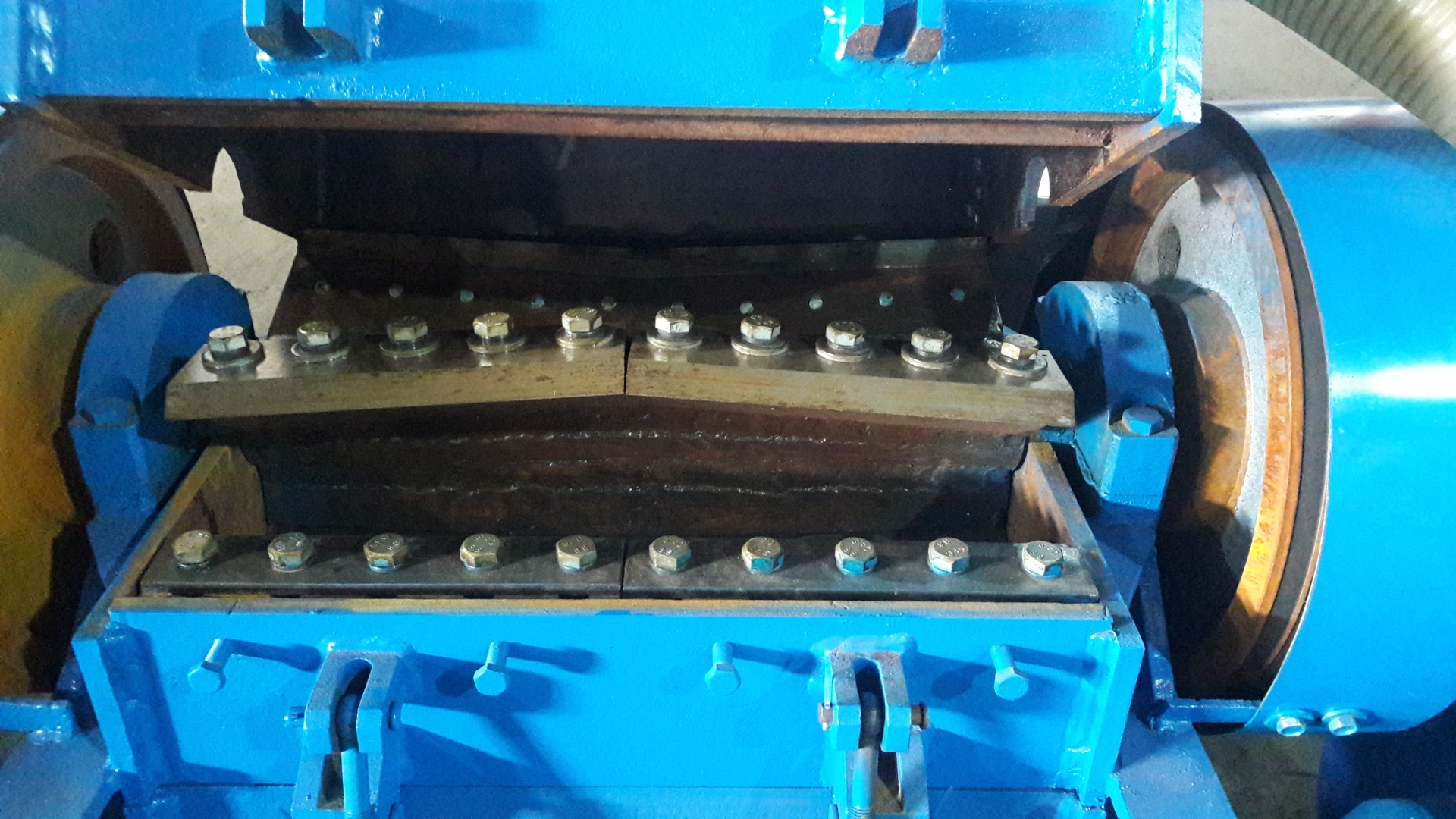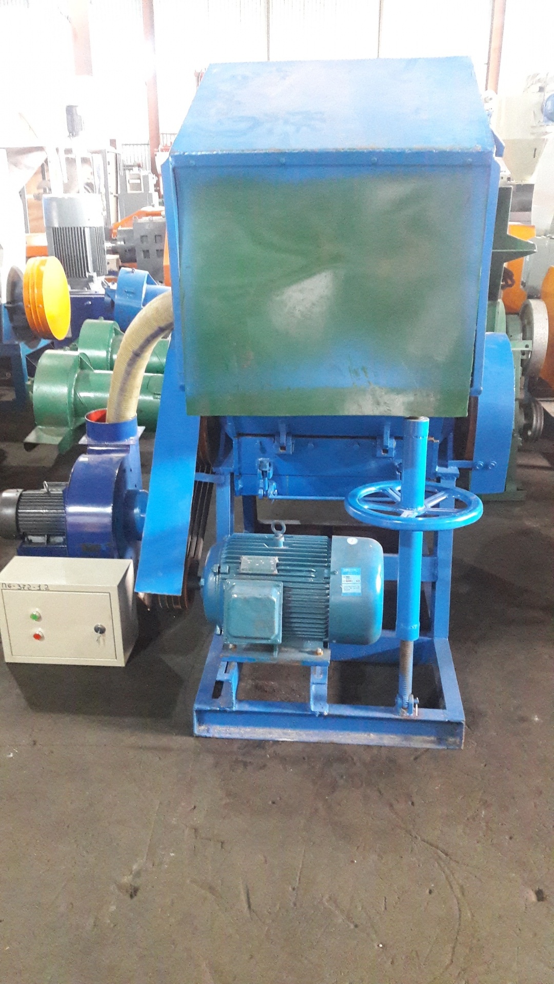 | Электродвигатель 37 кВт, 1000 об/мин. Диаметр ротора 210 мм, частота вращения ротора 560 об/мин,ножи: 4 стационарных, 6 роторных (косой рез) производительность 800 кг/ч, Сырье: ПЭТ-бутылки, полипропиленвые мешки, ПВД и стрейч пленка. |