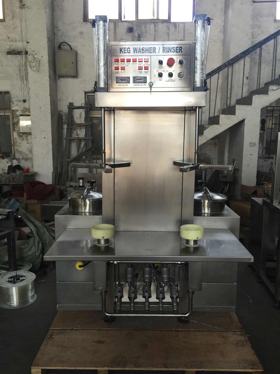Машина предназначенна для мойки, стерилизации стаьных, пластиковых кег. Производственный процесс, мойка, стерилизация и продувка кег СО2, полностью автоматизирован и управляется через консольный пульт. Процесс мойки: кеги устанавливаются на позицию, происходит ополаскивание водой, продувка воздухом, затем кега моется дезинфицирующим раствором, ополаскивается, продувается воздухом и углекислым газом, после чего мойка завершена.