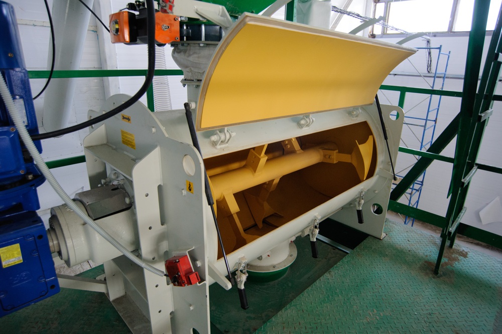 Качество и скорость перемешивания сухой смеси обеспечиваются формой и расположением плужных лемехов смесительного узла, которые имеют направленные рабочие поверхности и простую геометрическую форму, что увеличивает их долговечность и упрощает замену при ремонте. Рабочая область и люк выгрузки смесителя изолированы, что исключает пыление при разгрузке.