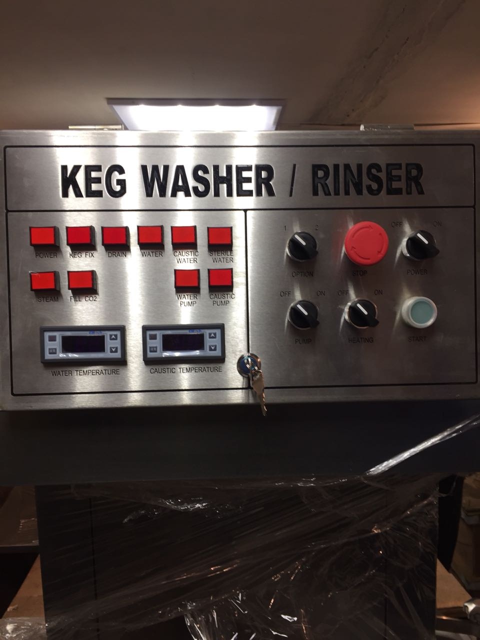 Машина предназначена для мойки, стерилизации стальных, пластиковых кег. Производственный процесс, мойка, стерилизация и продувка кег СО2, полностью автоматизирован и управляется через консольный пульт. Процесс мойки: кеги устанавливаются на позицию, происходит ополаскивание водой, продувка воздухом, затем кега моется дезинфицирующим раствором, ополаскивается, продувается воздухом и углекислым газом, после чего мойка завершена.