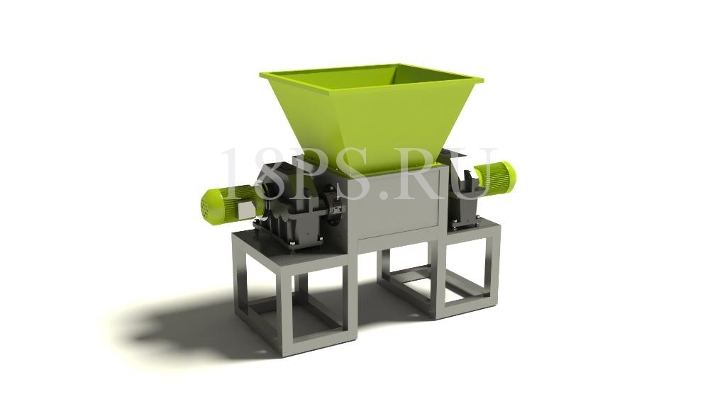 Двухроторные шредеры имеют в своём составе зубчатые дисковые ножи, набранные на вал. Два вала, вращаясь навстречу друг другу, захватывают и измельчают сырьё.