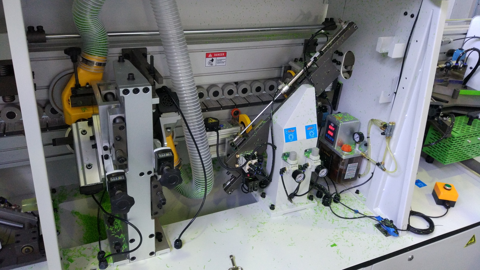 - Торцовочный узел для обрезки переднего и заднего свесов пилами, укомплектован двумя высокочастотными моторами;