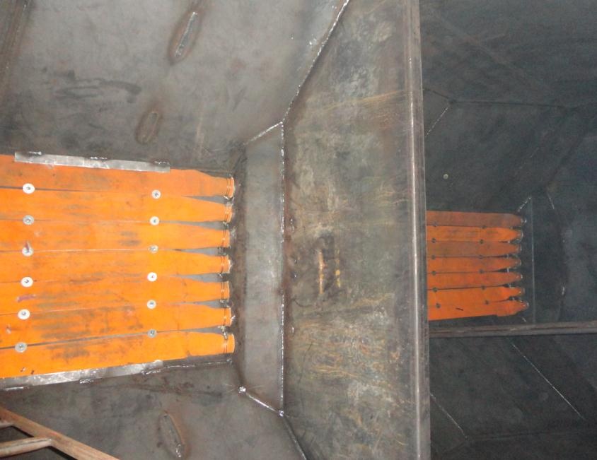 Конструкция резервуара состоит из цилиндрической оболочки, двух люков, двух разгрузочных отверстий и псевдосжиженного («кипящего») слоя для разгрузки.