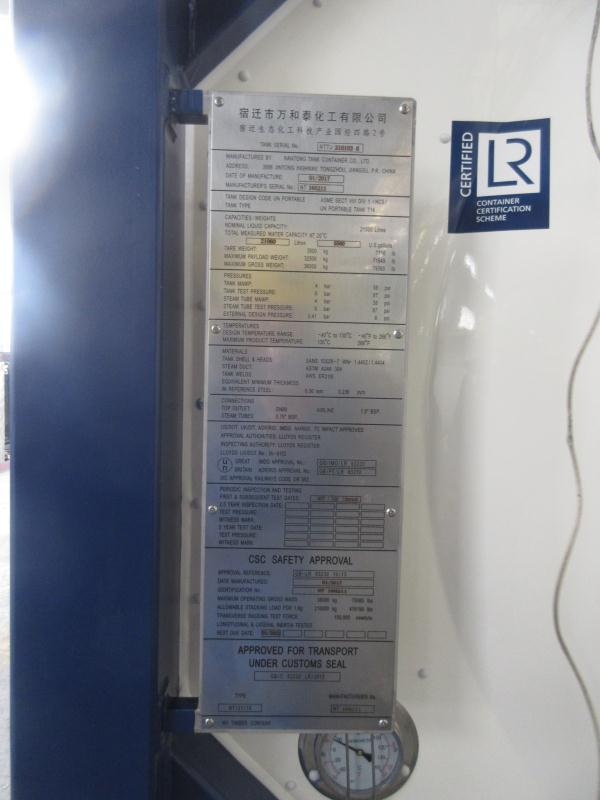 | Материал цистерны | Нержавеющие стали марок SANS 50028-7 1.4402/1.4404(316L) |