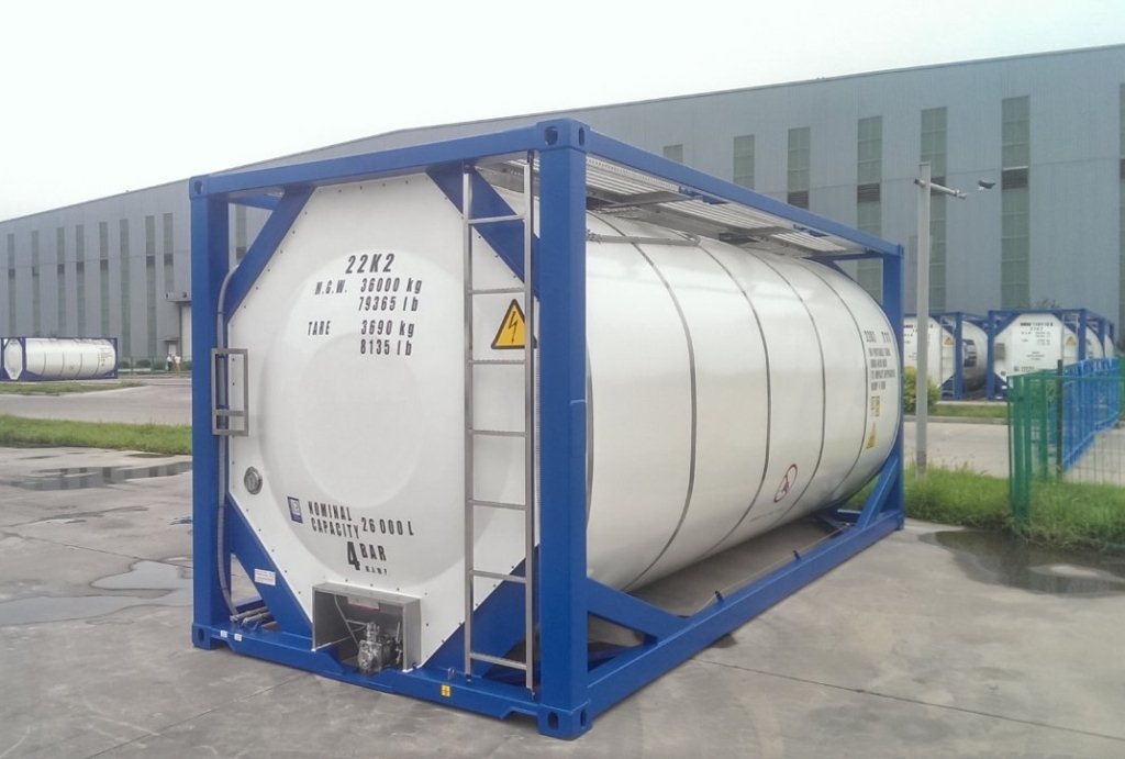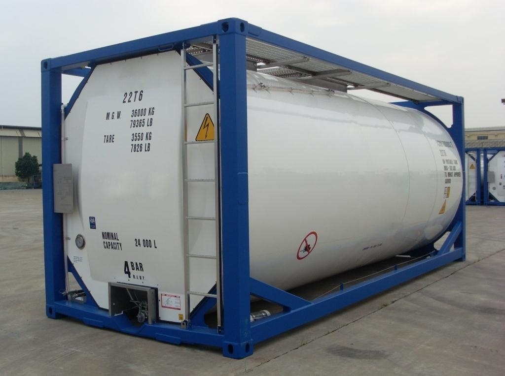 | Тип | Стандартный 20-фут танк-контейнер, полнокаркасная рама, тип UNPortableTankT11, с изоляцией и пароподогревом, с установленными верхними боковыми балками. С тремя вваренными V-образными противоударными перегородками (волногасителями) площадью 50% от поперечного профиля емкости. | |