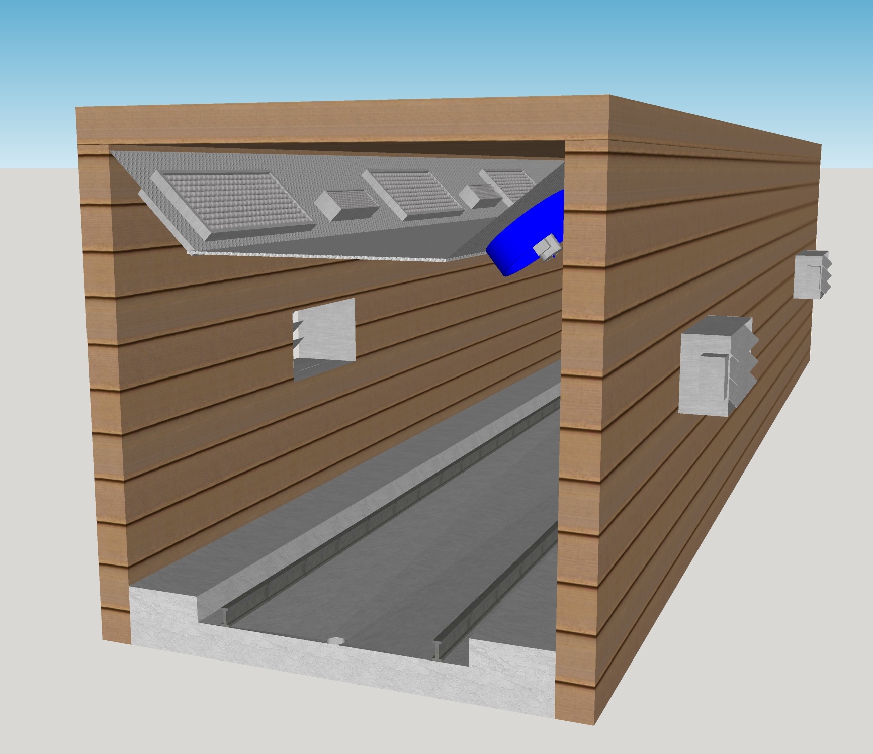 - 3D модель камеры (изображения взаимного расположения основных элементов конструкции сушильной камеры)