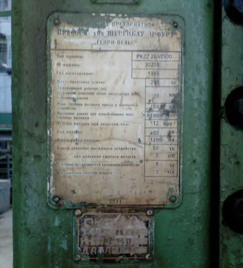 Пресс кривошипный Erfurt pkzz 250/2500 усилие 250 тонн Б/У - Продам в Екатеринбурге
