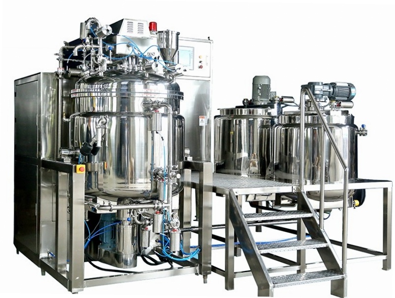 Вакуумный смеситель-гомогенизатор циркуляционного типа с гидравлической системой подъема крышки вместе с мешалкой. Применяется для производства косметики, крема, зубной пасты, гелей и т.д.