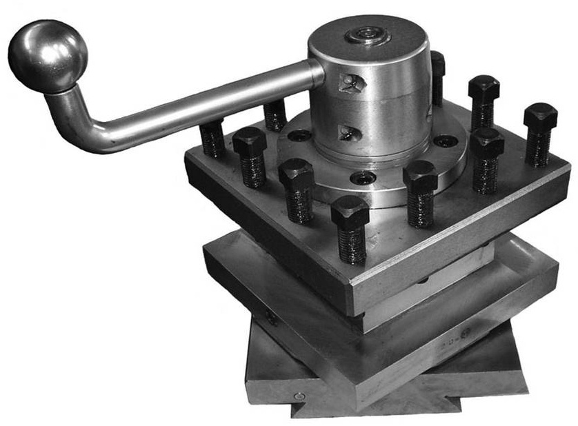 Резцедержатель станка - четырехгранная резцовая головка, которая поворачивается вокруг вертикальной оси на требуемый угол и закрепляется в нужном положении рукояткой. Такой резцедержатель позволяет закрепить одновременно четыре резца, а для установки требуемого резца требуется только повернуть резцедержатель. Резцедержатель устанавливается на верхней части суппорта.