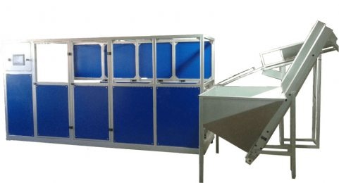 Автомат выдува начинается с загрузки ПЭТ преформ в специальный бункер, на выходе автомата производиться автоматическая выгрузка готовых бутылок в встроенную линию. Ориентация ПЭТ преформ, разогрев и формообразование происходят внутри машины автоматически.