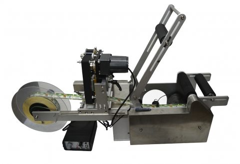 Полуавтоматическая этикетировочная машина (этикетировщик ручной) в комплектации с маркиратором для нанесения этикеток на цилиндрическую продукцию и одновременной печати даты на этикетке.