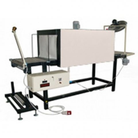 В состав машины входят: термотоннель с движущимся транспортёром и одной зоной нагрева, оборачивающий узел с прямым ручным импульсным (три нити) термоножом, подающий и приемный рольганги,напольный рулонодержатель. Возможна комплектация по желанию заказчика.