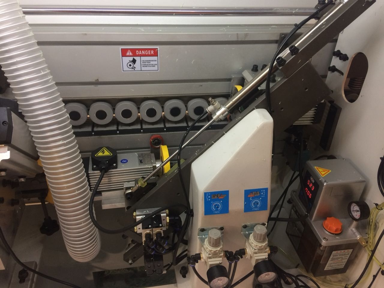 - Магазин подачи рулонного кромочного материала;