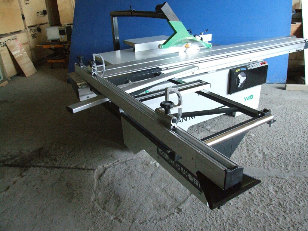 Форматно-раскроечный станок Y45 с наклоняемой пилой и подвижной кареткой на роликовых направляющих.