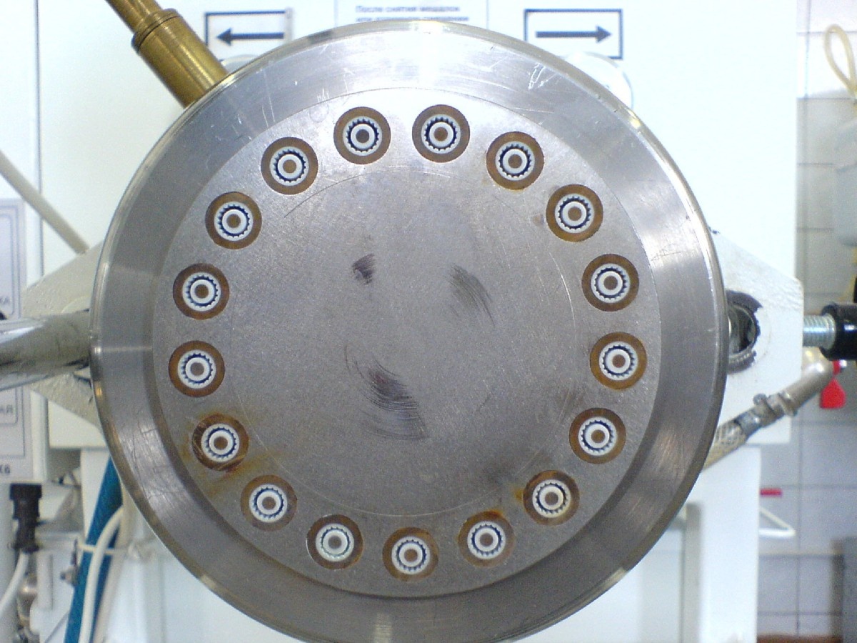 Матрицы диаметром 128 мм с фторопластовыми фильерами, изготовленными на Итальянском оборудовании.