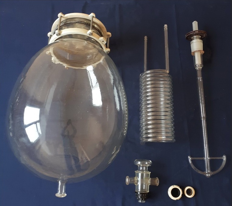 Купить Новый лабораторный (полупромышленный) стеклянный, грушевидный, толстостенный, химический реактор с нижним спуском, из термостойкого стекла Пирекс производства «Симакс» («Simax») Чехословакия.Складское хранение.