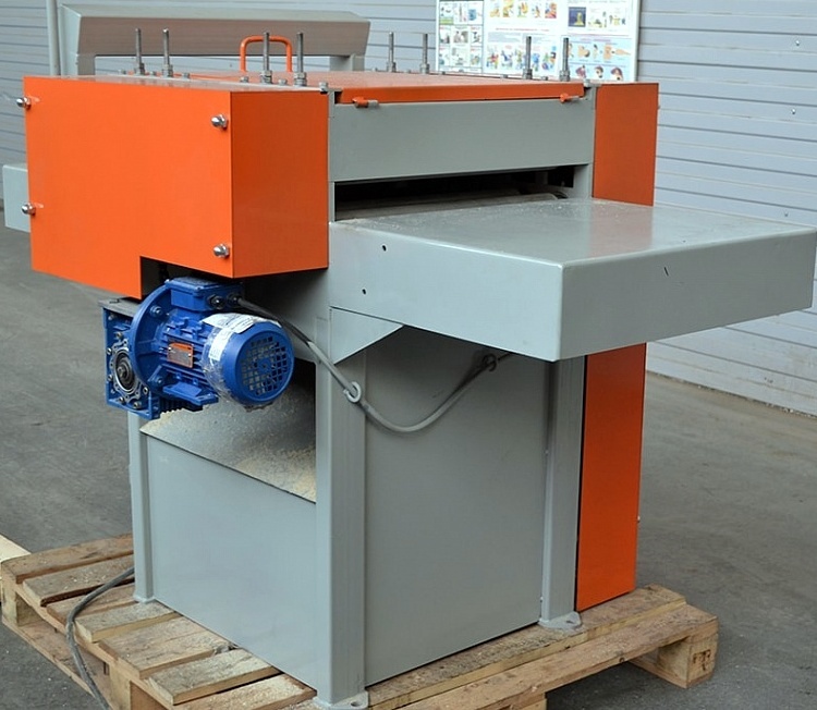 КС500 - многопильный станок, расстояние м/у пилами регулируется жесткими проставками, до 8 пил на валу. Мощность 15кВт. Количество приводных рябух 4шт.