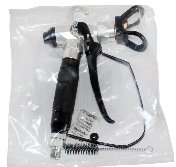 Подача лакокрасочного материала осуществляется непосредственно из ёмкости с краской и подачей материала под высоким (регулируемым) давлением на краскопульт. Вы можете красить как большие поверхности так и труднодоступные места без потери качества. В комплекте удлинитель на краскораспылитель, который незаменим для покраски потолков!