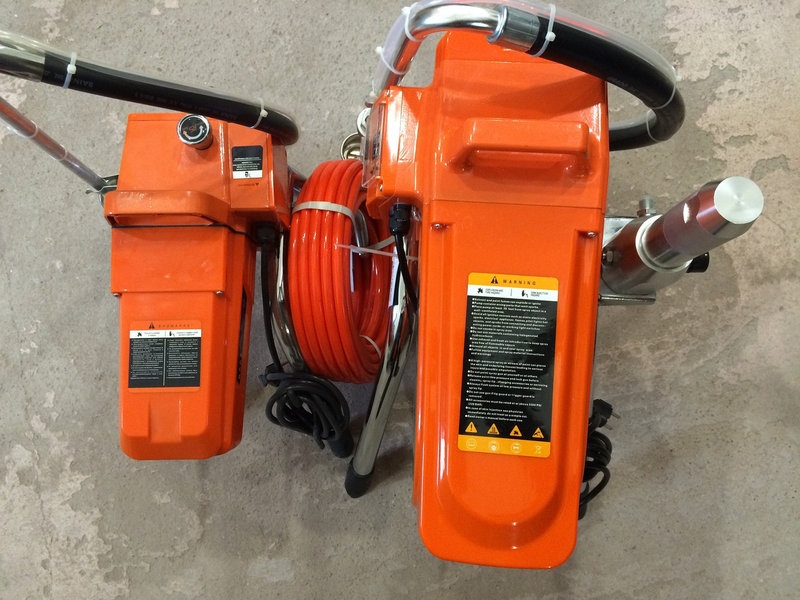 Забор малярной жидкости производится при помощи шланга из любой подходящей ёмкости – банки, бочки, ведра и т.д. Насос с электродвигателем 1300 Ватт, который способен нагнетать до 200 Бар рабочего давления, что позволяет доставлять лакокрасочный материал по шлангу на расстояние до 30 метров от местоположения ёмкости.