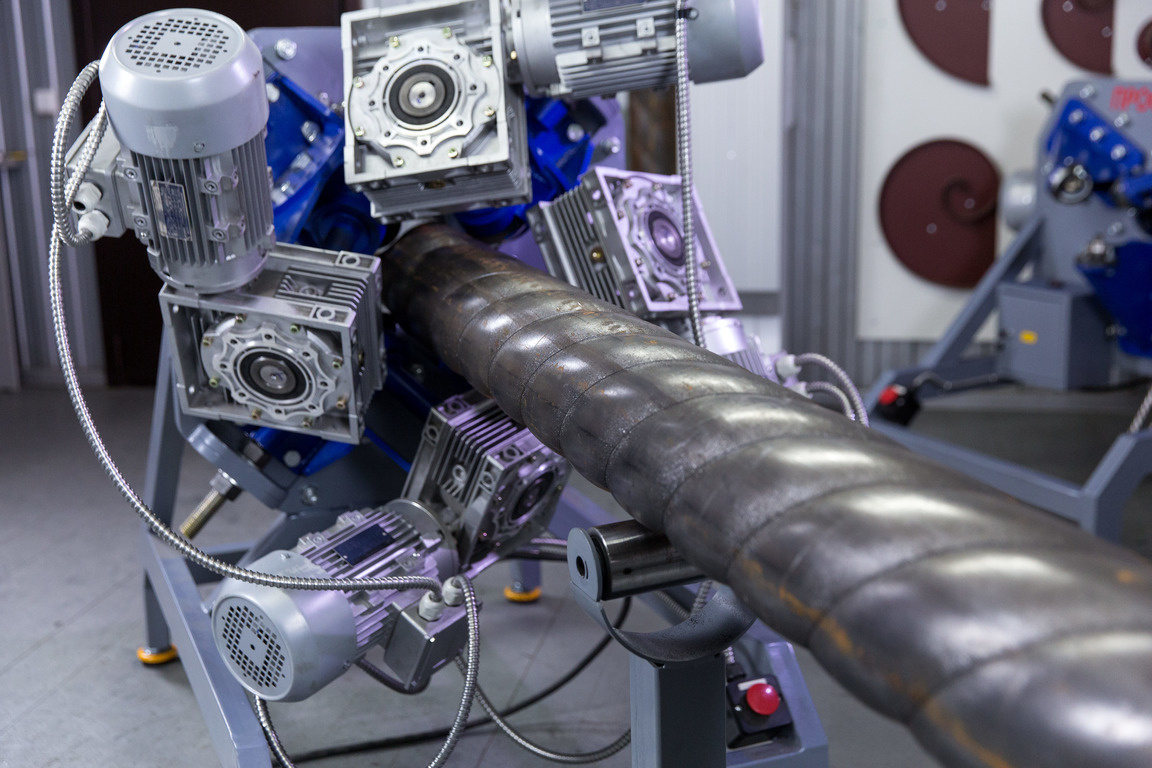 Оборудование предназначено для изготовления элементов художественного декора - «витая труба» из круглой электросварной или бесшовной трубы Ø от 32 до 159 мм., с толщиной стенки до 4,5 мм., регулируемым углом подъема витка: 35, 45 и 55 градусов и навивкой однонаправленной или перекрестной. Погрешность настройки по линейкам 0,5 мм.